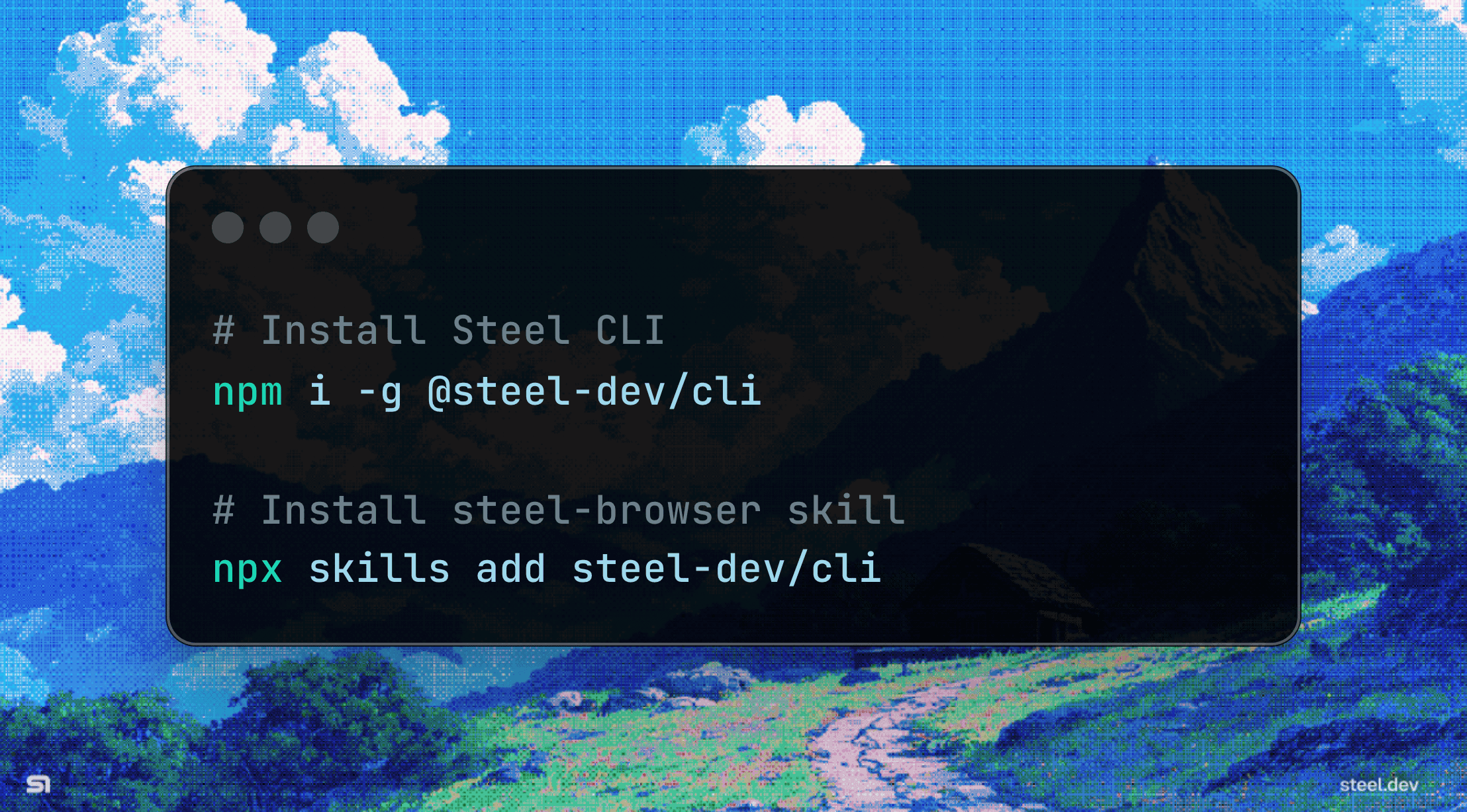 Today we're launching the new Steel CLI and steel-browser skill, which brings browser automation redesigned from the ground up for agents.